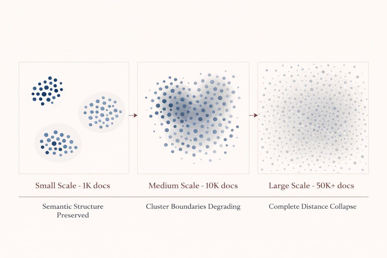 Past ~10,000 documents, these vectors start behaving like random noise.